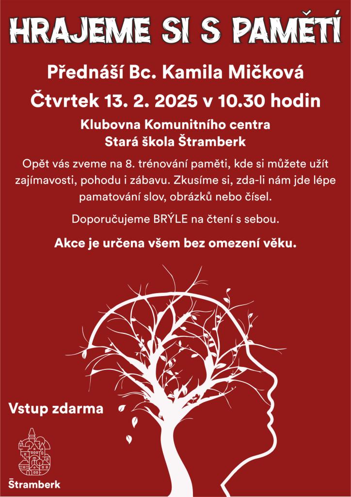 Opět vás zveme na 8. trénování paměti, kde si můžete užít zajímavosti, pohodu i zábavu. Zkusíme si, zda-li nám jde lépe pamatování slov, obrázků nebo čísel.
